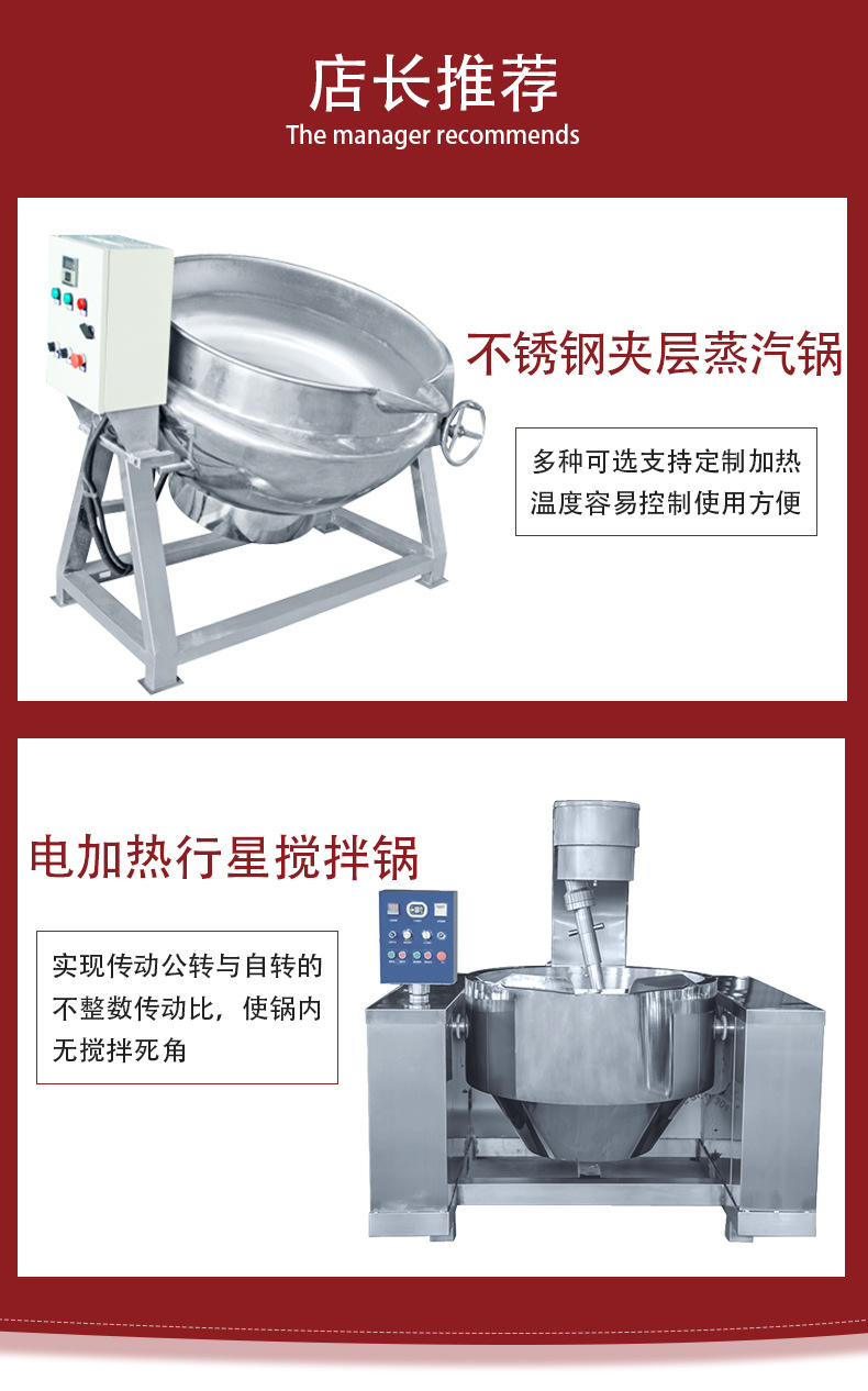 1、以蒸汽、燃?xì)?、?dǎo)熱油為熱源,價(jià)格低廉,操作簡單方便,具有受熱面積大、熱效率高、物料升溫快,加熱均勻及加熱溫度易于控制等優(yōu)點(diǎn)。